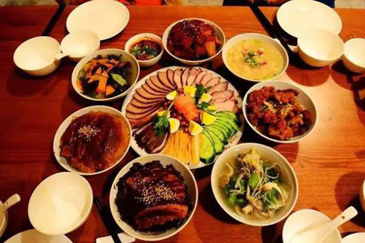 土八碗由八道热菜组成:添加红粬米的红肉炖;挂蛋糊油炸的酥肉;加酱油、蜂蜜扣蒸的五花三线肉千张;配加红薯或土豆的粉蒸肉;猪头、猪肝、猪肉卤制的干香;加盖肉茸、蛋屑的白扁豆;木耳、豆腐、下水、蛋丝、菜梗氽制的杂碎;配加炸猪条的竹笋。白族红白喜事宴客中的八大碗是白族传统饮食文化的集中表现。宴桌是八仙桌(正方形的大理石雕花桌),一般8个人为一桌,菜肴上8个,俗称“八大碗”。
